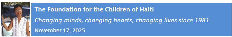 Or write us: The Canadian Foundation for the Children of Haitii 6093 – 145A Street. Surrey, B.C. V3S 4R6 Canada Revenue Agency Business Number 89000 4591 RR0001