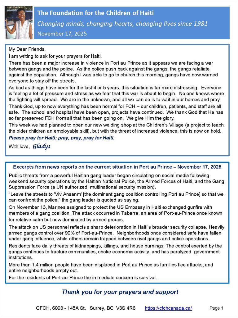 The Canadian Foundation for the Children of Haiti (“CFCH”) is an all-volunteer fundraising organization that has supported the work of FCH since 1993.