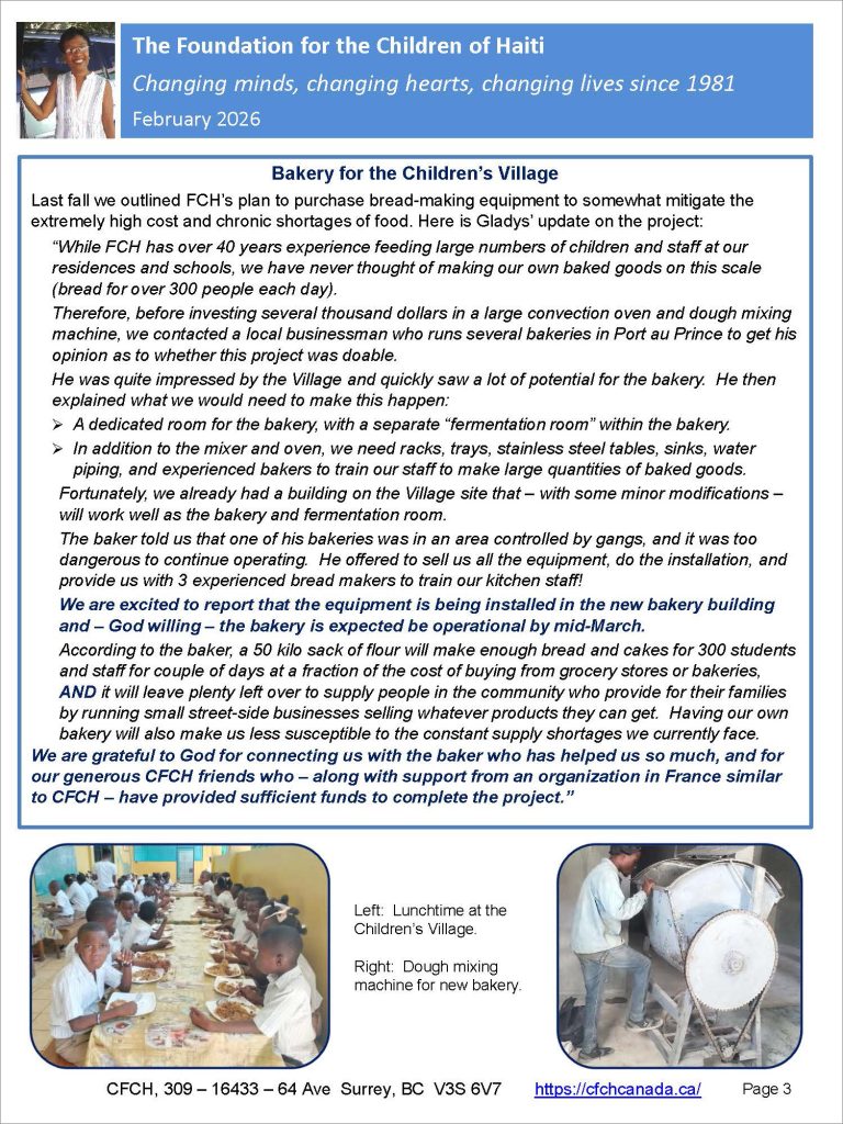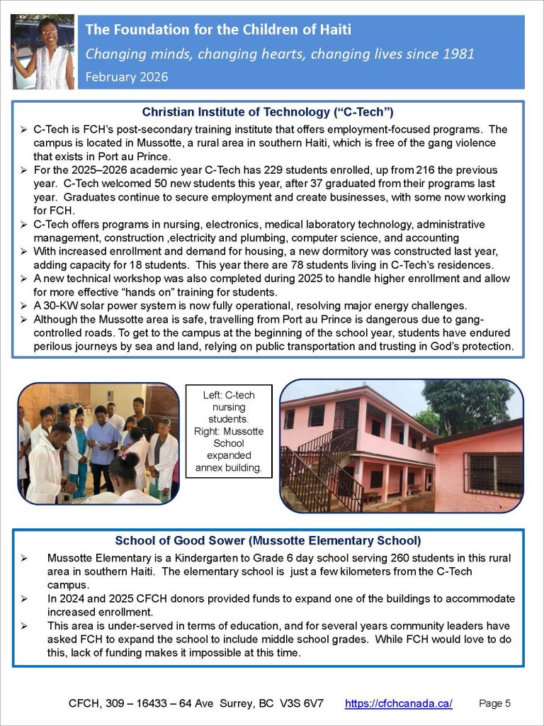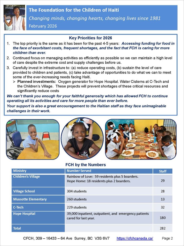 The Canadian Foundation for the Children of Haiti (“CFCH”) is an all-volunteer fundraising organization that has supported the work of FCH since 1993. Canadian Foundation for the Children of Haiti 16433 64 Ave #309, Surrey, B.C. V3S 6V7 CFCH is a Canadian Registered Charity Canada Revenue Agency Business Number 89000 4591 RR0001