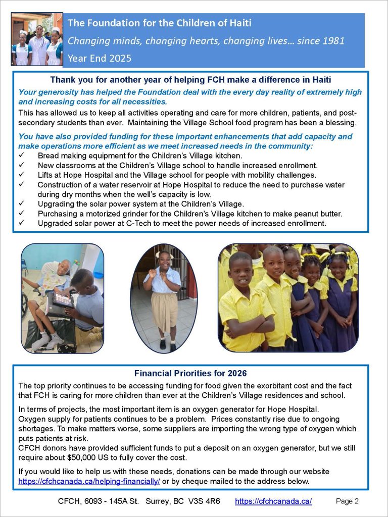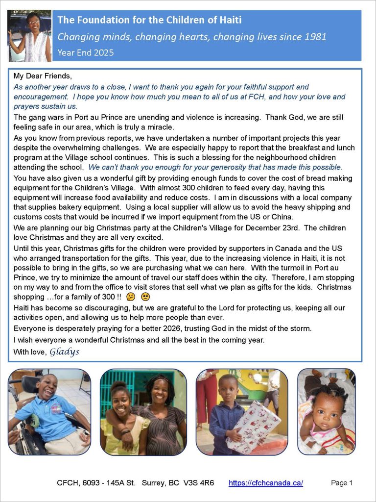 The Canadian Foundation for the Children of Haiti (“CFCH”) is an all-volunteer fundraising organization that has supported the work of FCH since 1993.